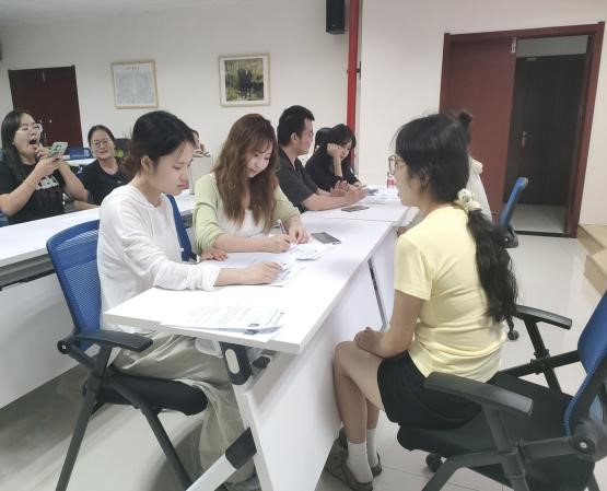 随后,在各部门负责人的组织下,新生们分别在911报告厅和902会议室参加面试。面试环节采取自我陈述与部门负责人提问相结合的形式,每位面试者首先进行2-3分钟的自我介绍,包括自己对竞选岗位的理解、个人能力介绍、员工工作经历以及未来的工作计划等。随后,由各部门负责人对面试者提出问题,着重考察他们的工作态度、工作能力及对组织的认识。面试的过程中,新生们积极踊跃参与,部门负责人认真仔细提问。现场氛围轻松有趣,整个面试过程井然有序。