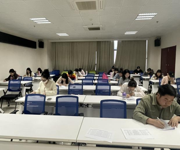本次初赛采用闭卷笔试的形式,考试内容涵盖基础心理学、应用心理学、心理健康评估等多个模块,具体涉及了员工比较关注的“学业压力应对”、“人际关系冲突”、“老员工恋爱心理”等常见心理问题,考题内容设置合理,全面考察了参赛选手的心理健康基础知识和实践应用能力。考场布置严格遵循标准化考试流程,教室配备2名监考员,为员工营造了公平有序的竞赛环境。