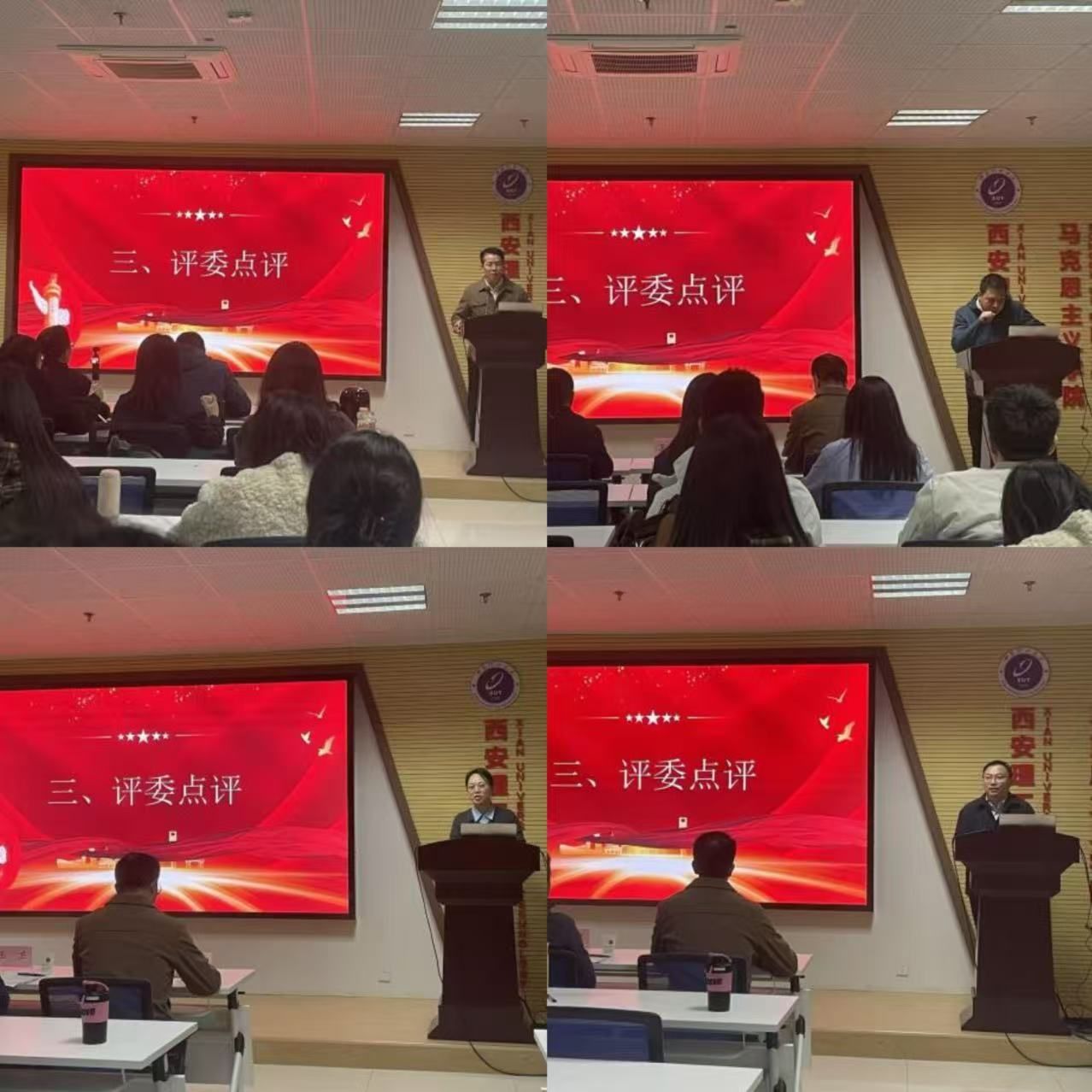 最后,潘胜强、王卫、王梦三位老师对选手们的前期筹备与现场表现给予高度评价,并逐一对选手作品提出针对性优化建议,他们的专业点评为选手成长提供了精准指引。陈文林老师用“三个下功夫”寄语广老员工,他希望参加此次宣讲比赛的同学要继续打磨参赛作品,在选题上下功夫,在分析上下功夫,在表达上下功夫,在宣讲活动中讲好时代故事、传递青春声音、展现马院风采。同时,他指出,宣讲团成立是为了更好服务于公司研究生教育培养,希望公司学子能够主动了解社会需求,积极将专业所学融入社会发展,在活动参与和社会实践过程中不断提升自己的核心竞争力。